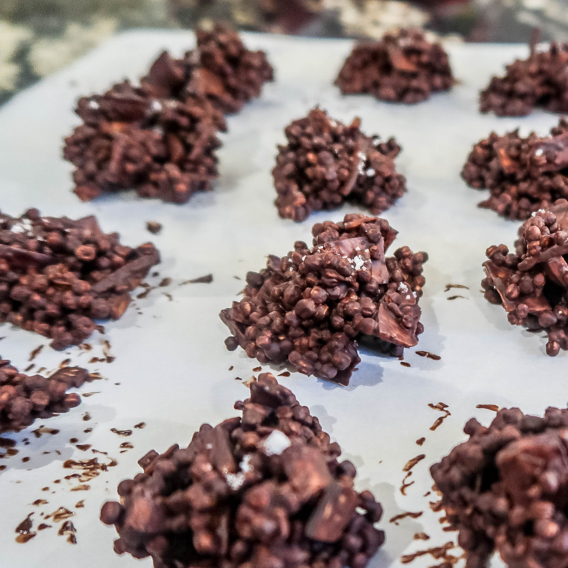 3. Drop little spoonfuls of the mixture on a parchment paper covered baking tray and sprinkle with sea salt.